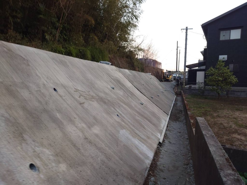 造成工事と防草シート張り、法面生コン打設工事を行いました。 -